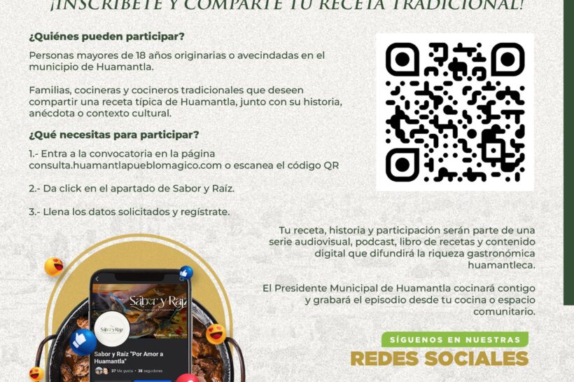 Guillermo Veloz | La Noticia de Tlaxcala Huamantla, Tlax, 5 de febrero de 2026.- El Gobierno Municipal convoca a la ciudadanía a compartir recetas tradicionales que preservan la memoria, el orgullo y la herencia gastronómica del Pueblo Mágico Con el firme propósito de rescatar, preservar y difundir la riqueza gastronómica que da identidad a Huamantla,…