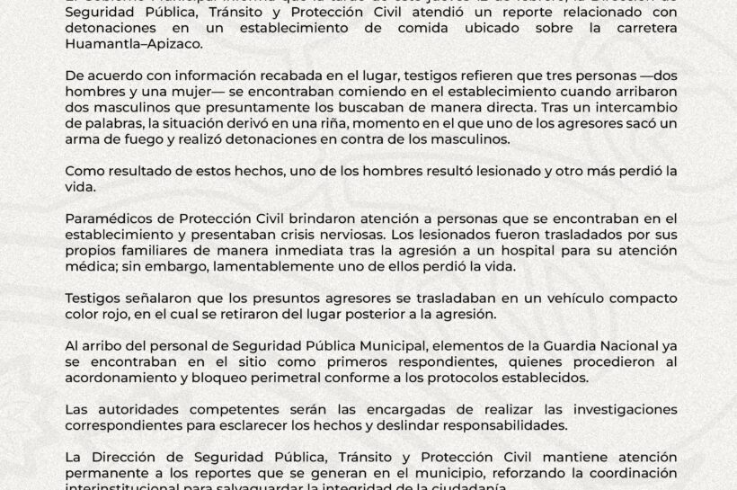 Jonathan Olvera | La Noticia de Tlaxcala Totolac, Tlax., 11 de febrero de 2026.- Personal de la Coordinación Estatal de Protección Civil (CEPC) atendió de manera inmediata el reporte de una explosión registrada en un establecimiento ubicado en la comunidad de Acxotla del Río, municipio de Totolac, con el objetivo de salvaguardar a la población…