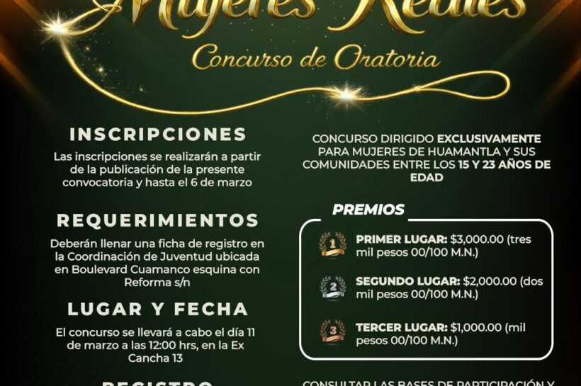 Guillermo Veloz | La Noticia de Tlaxcala Huamantla, Tlax., 23 de febrero de 2026.- En el marco de las actividades por el Día Internacional de la Mujer, el Gobierno Municipal de Huamantla, a través de la Coordinación de Juventud, lanzó la convocatoria para el concurso de oratoria “Mujeres Líderes: Mujeres Reales”, dirigido a jóvenes de…