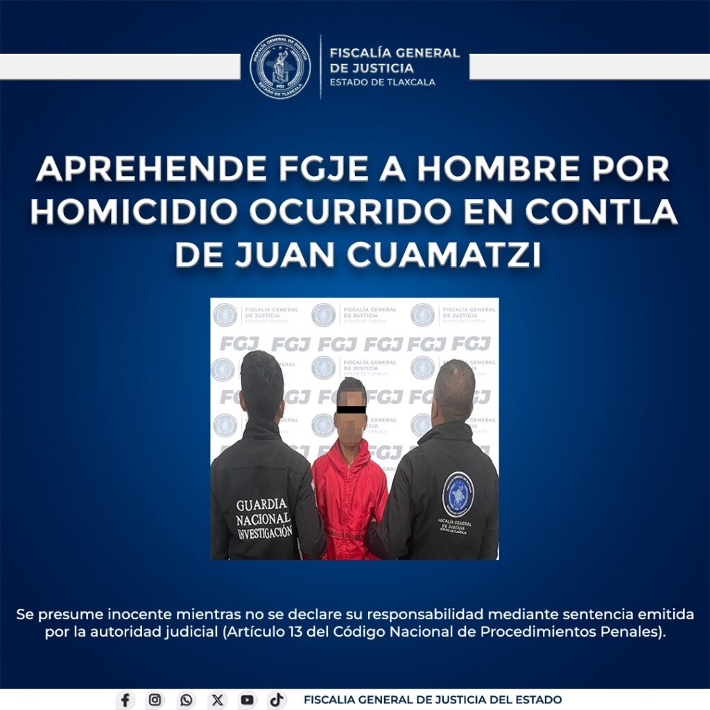 Jonathan Olvera | La Noticia de Tlaxcala Tlaxcala, Tlax., 25 de febrero de 2026.- La Fiscalía General de Justicia del Estado de Tlaxcala cumplimentó una orden de aprehensión en contra de Mauricio N., alias “Tecolín”, señalado como probable responsable del delito de homicidio calificado, derivado de los hechos ocurridos el pasado 3 de febrero en…