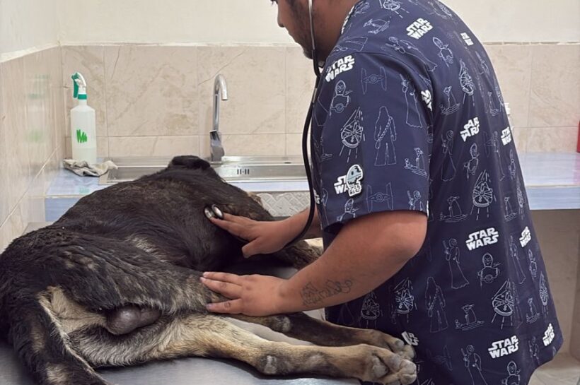 Perrito atropellado muere pese a la atención inmediata de la Clínica Biofilica de Huamantla