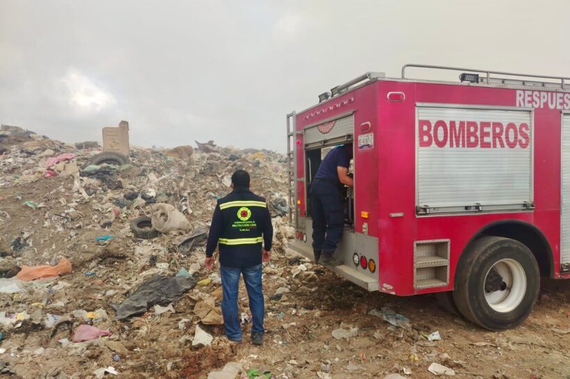 AUTORIDADES ESTATALES Y MUNICIPALES COMBATEN INCENDIO EN RELLENO SANITARIO DE NANACAMILPA