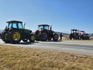 CALPULALPAN, Tlax., 24 de noviembre de 2025.- La mañana de este lunes, agricultores bloquearon la Autopista Arco Norte, a la altura de la comunidad de Madero, en el tramo Calpulalpan–Sanctorum, como parte del paro nacional agrícola convocado para exigir mejores condiciones para el campo mexicano.