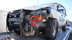 Tlaxcala, Tlax., 24 de diciembre de 2025.— La mañana de este martes se registró un aparatoso accidente vial sobre el Boulevard Gasoducto, en la capital del estado, a la altura de la tienda Soriana Ocotlán, donde se vieron involucrados un automóvil particular y una patrulla de la Policía Municipal de Tlaxcala.