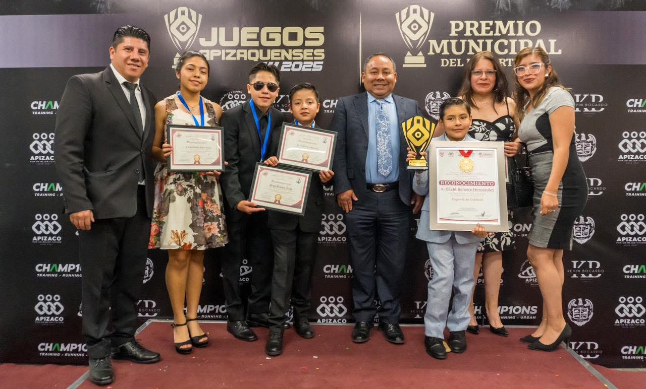 Asimismo, se premió a los equipos triunfadores de los Juegos Apizaquenses 2025 en las disciplinas de basquetbol, voleibol, futbol rápido y acuatlón.