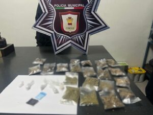 En la revisión se localizaron bolsas con hierba verde con características similares a la marihuana, así como envoltorios con polvo blanco tipo cristal y un teléfono celular. Al no poder justificar la posesión de los presuntos narcóticos, ambos individuos fueron detenidos conforme marca el protocolo y se les leyeron sus derechos.