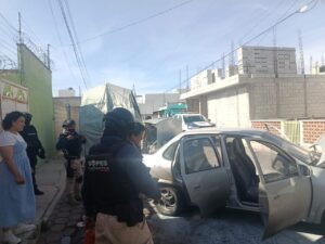 Huamantla, Tlax., 18 de abril de 2026. La Dirección de Seguridad Pública, Tránsito y Protección Civil de Huamantla informa que, la tarde de este sábado, se atendió el reporte de un automóvil en llamas en la calle San Miguel, del fraccionamiento San Carlos.