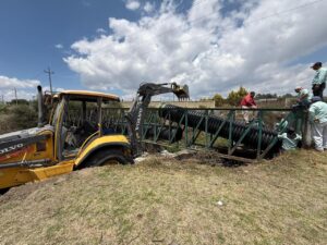Huamantla, Tlaxcala.– La Comisión de Agua Potable y Alcantarillado del Municipio de Huamantla (CAPAMH) atendió de manera oportuna una afectación en la infraestructura del drenaje principal, derivada de una quema agrícola que se salió de control.