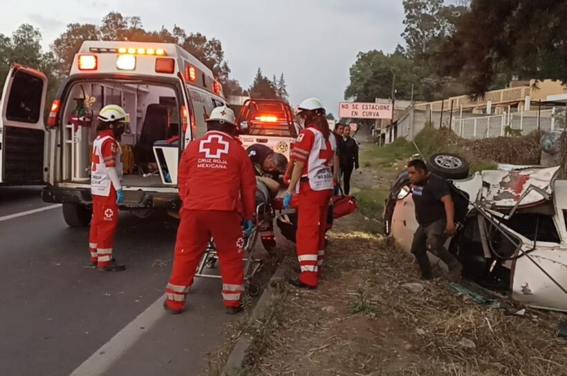 Aparatoso accidente en la carretera Tlaxcala-Texmelucan deja al conductor gravemente herido