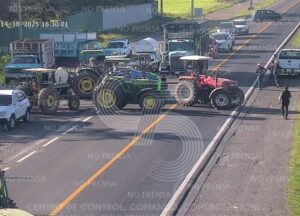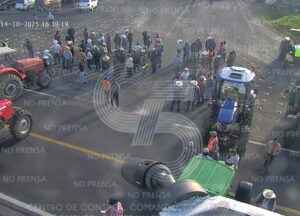 Nanacamilpa, Tlax., 14 de octubre de 2025.- Desde esta mañana se registran bloqueos intermitentes sobre la carretera México–Veracruz, a la altura del acceso al municipio de Nanacamilpa, donde un grupo de ejidatarios mantiene una protesta por demandas agrarias.