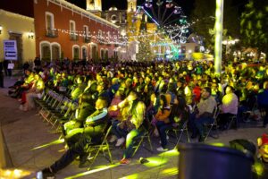 El ambiente festivo continuó con el encendido del árbol monumental de Navidad, acto dirigido por el alcalde y acompañado de un espectáculo de fuegos artificiales que iluminó el cielo de Huamantla. La noche culminó con la presentación musical de “Tren a Marte”, que puso el ritmo y la energía para cerrar la jornada.