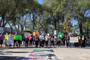 Tlaxcala, Tlax., 24 de octubre de 2025.- Con carteles, consignas y pasos firmes, un grupo de ciudadanos recorrió pacíficamente las calles desde el Parque de la Juventud hasta el Palacio de Gobierno, para exigir protección de las áreas verdes ante la anunciada rehabilitación del parque.