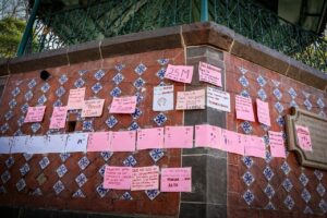 Durante la intervención, las colectivas invitaron a transeúntes a participar en una dinámica basada en el violentómetro, en la que identificaron agresiones vividas y marcaron cada una con una huella de pintura, símbolo del impacto real y cotidiano de la violencia.