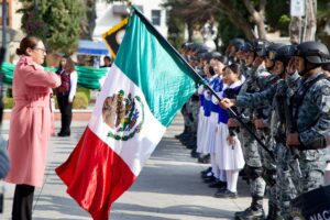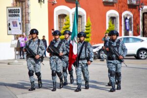 La jornada inició con un homenaje cívico como parte del programa Lunes Cívico–Social con la Guardia Nacional, iniciativa que busca fortalecer el vínculo entre las instituciones de seguridad y la comunidad, además de promover el patriotismo, el respeto a los símbolos nacionales y la cultura de la denuncia.