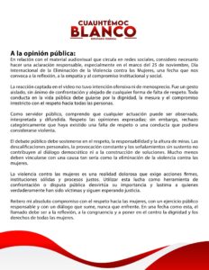 Ante la ola de críticas, Blanco difundió un comunicado asegurando que “no hubo intención ofensiva ni de menosprecio”, calificando la acción como un gesto aislado y sin ánimo de confrontación. Sin embargo, la aclaración llegó tarde y con un tono que para muchos evidencia más un intento de control de daños que un verdadero acto de empatía o responsabilidad pública.