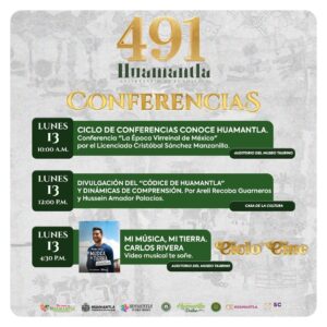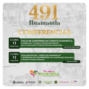 Huamantla, Tlax., 13 de octubre de 2025.- En el marco de los 491 años de la fundación de Huamantla, este día se llevará a cabo una jornada cultural dentro del ciclo de conferencias “Conoce Huamantla”, con actividades que buscan fortalecer la identidad y el orgullo por el municipio.
