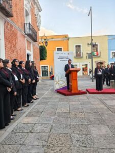 Tlaxcala, Tlax., 30 de septiembre de 2025. – El presidente municipal de Yauhquemehcan, David Vega Terrazas, participó este lunes en el arrío de la Bandera Nacional, realizado en la Plaza de la Constitución de la capital del estado, como parte de las actividades cívicas organizadas por el Gobierno del Estado.