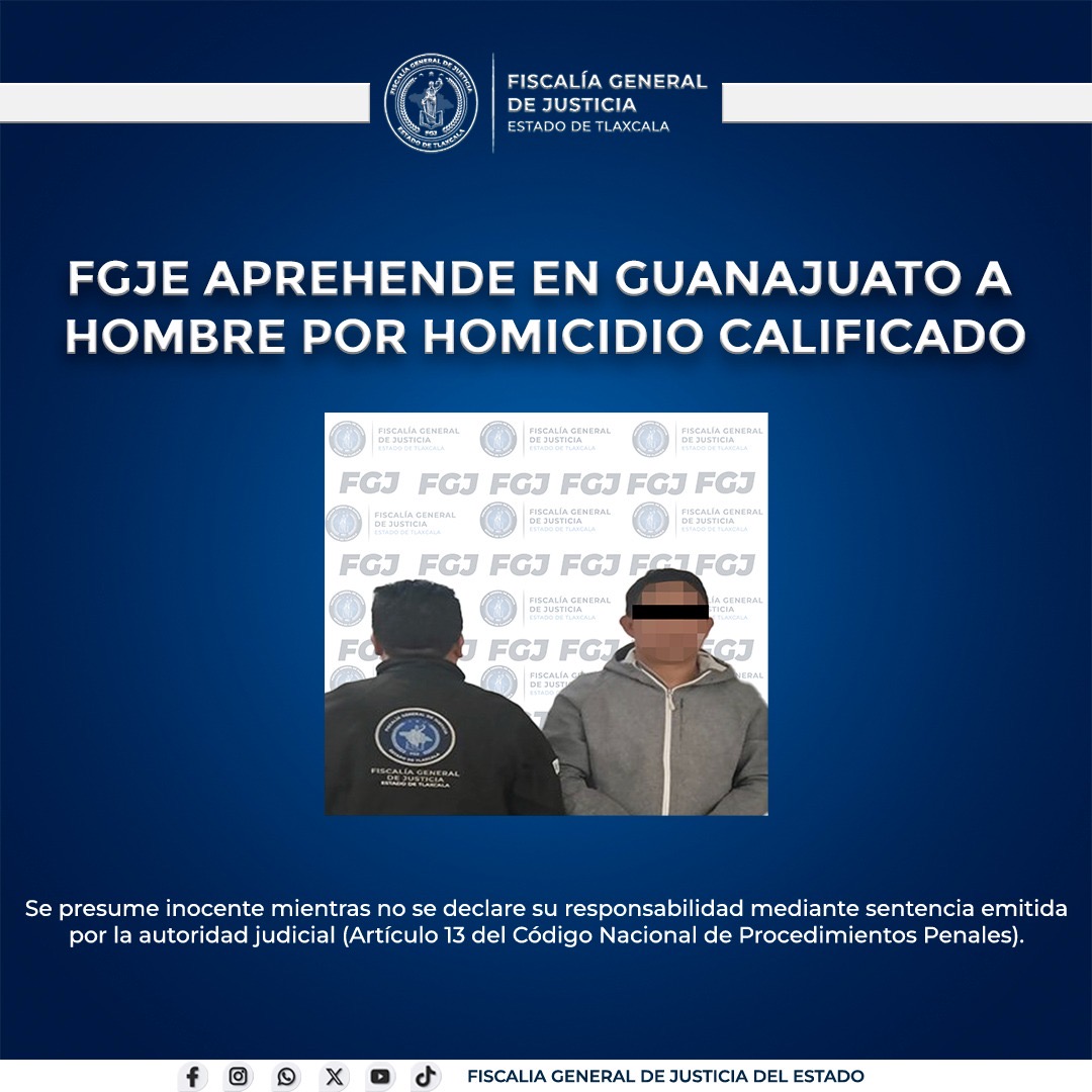 Tlaxcala, Tlax., 9 de marzo de 2026.- Como resultado de labores de inteligencia y coordinación interinstitucional, elementos de la Policía de Investigación de la Fiscalía General de Justicia del Estado de Tlaxcala (FGJE) cumplimentaron una orden de aprehensión en contra de Iván N., alias “El Chobo”, por su probable responsabilidad en el delito de homicidio calificado.