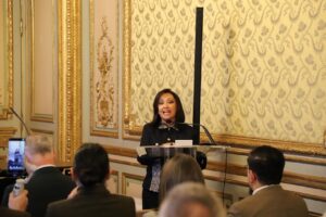 MADRID, ESPAÑA, 20 de enero de 2026.- En el marco de la gira de promoción turística, cultural y comercial que realiza en España con motivo de la Feria Internacional de Turismo (FITUR) 2026, la gobernadora de Tlaxcala, Lorena Cuéllar Cisneros, participó en el Seminario “Tlaxcaltecas y españoles: un encuentro que marcó la Historia (siglos XVI y XVII)”, realizado en Casa de América, espacio emblemático para el diálogo cultural e histórico entre las naciones iberoamericanas.