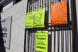 Con cartulinas y consignas colocadas en las instalaciones, los trabajadores denunciaron presuntas arbitrariedades, acoso y hostigamiento laboral, además de la falta de uniformes y malas condiciones de trabajo.