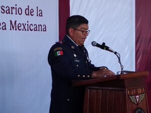 En el acto protocolario también estuvieron presentes el coronel de Arma Blindada y comandante del Primer Regimiento Mecanizado, Alfredo Montiel Sánchez, y el comandante de la 11ª Coordinación de Unidad de la Guardia Nacional, Miguel Ángel García Morales, entre otros mandos militares.