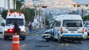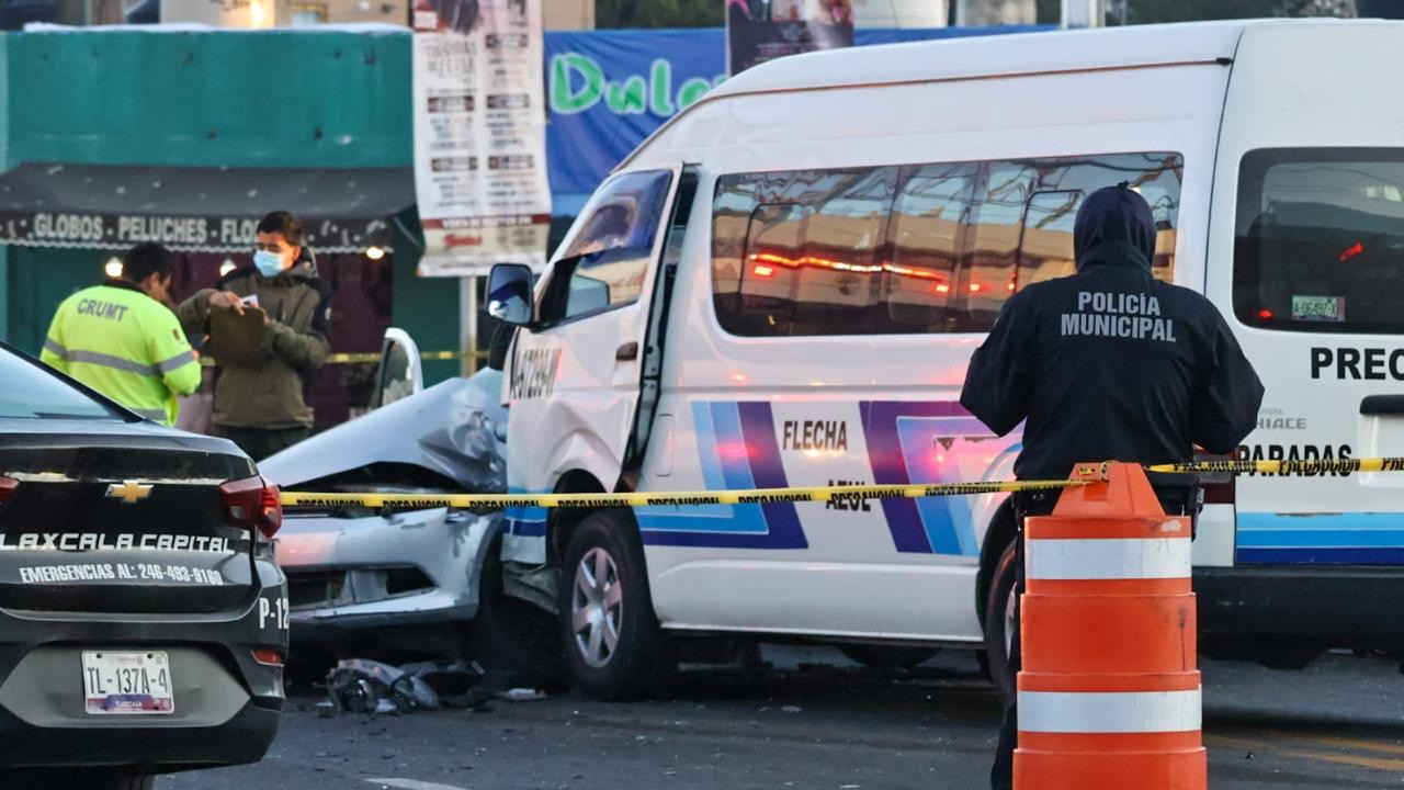 TLAXCALA, Tlax., 23 de noviembre de 2025.- Un hombre de aproximadamente 40 años perdió la vida este domingo tras un fuerte choque entre una unidad de transporte público de la ruta Flecha Azul y un vehículo particular color plata, registrado sobre la avenida Independencia, a la altura del asta bandera, con dirección a la capital tlaxcalteca.