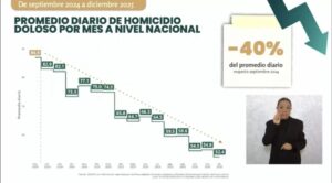 Cuernavaca, Morelos, 8 de enero de 2026.- La Presidenta de México, Claudia Sheinbaum Pardo, informó que los homicidios dolosos disminuyeron 40 por ciento de septiembre de 2024 a diciembre de 2025, al pasar de un promedio diario de 86.9 a 52.4 víctimas, lo que equivale a 34 homicidios menos cada día a nivel nacional. Este resultado posiciona a diciembre de 2025 como el mes con la tasa más baja desde 2015.