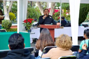 Al evento asistieron la síndico municipal, Brizeyla Iveet Rodríguez López; el secretario del Ayuntamiento, Luis Miguel Quiroz Martínez; la directora de Seguridad Pública, Protección Civil y Tránsito Municipal, Gloria Lilia Checa Hernández; así como la coordinadora del programa “Mujeres Tejedoras de la Patria”, Gethsemaní Velázquez Cervantes.