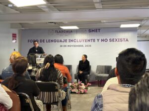 Huamantla, Tlax., 19 de noviembre de 2025.- La Secretaría de las Mujeres del Estado de Tlaxcala (SMET) realizó el Foro de Lenguaje Incluyente y No Sexista en las instalaciones del Instituto Politécnico Nacional (IPN), un espacio abierto a la ciudadanía y dirigido especialmente a profesionales de la comunicación de diversos municipios.
