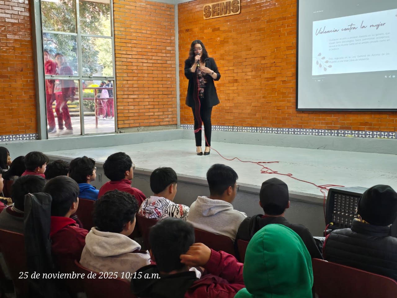 La charla fue impartida por la psicóloga María Karla Nelly Alcántara Gallegos, quien abrió un diálogo directo y sin rodeos con las y los estudiantes, recordándoles una premisa fundamental: la violencia no se elimina por sí sola; cambia cuando cada persona decide no normalizarla.