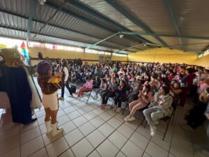 La caravana dio inicio en la comunidad de San José Xicohténcatl, donde las y los menores recibieron con entusiasmo sus regalos y la tradicional rosca de Reyes. Posteriormente, en la colonia NCP Morelos, las niñas y niños convivieron con los Reyes Magos y con las guerreras K-pop, con quienes se tomaron fotografías y compartieron momentos de alegría.