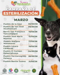 Autoridades informaron que las próximas jornadas se llevarán a cabo el 19 de marzo en la comunidad de Lázaro Cárdenas y el 24 de marzo en El Carmen Xalpatlahuaya, en un horario de 9:00 a 13:00 horas, donde se ofrecerán esterilizaciones gratuitas para perros y gatos, tanto machos como hembras, a partir de los tres meses de edad.