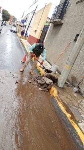 Asimismo, continúan las labores de bacheo y colocación de adoquines en diferentes calles del municipio, con el propósito de prevenir socavones, mejorar la movilidad y fortalecer la seguridad vial.