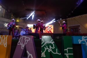 El escenario principal de la Aldea Mágica fue el punto de encuentro para la presentación musical del grupo Los del Graan Reey, quienes ofrecieron un espectáculo lleno de ritmo y entusiasmo, logrando que chicos y grandes disfrutaran de una velada marcada por la música, el baile y el espíritu festivo.