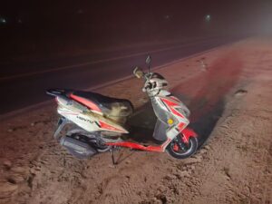 Huamantla, Tlaxcala; 02 de febrero de 2026.– Como parte de los operativos permanentes de seguridad y prevención del delito, elementos de la Dirección de Seguridad Pública, Tránsito y Protección Civil de Huamantla localizaron y aseguraron una motocicleta en estado de abandono sobre la carretera local que conduce a la comunidad de Benito Juárez.