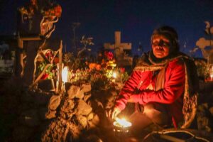 Bajo un cielo estrellado, niños, jóvenes y ancianos compartieron historias, rezos y música tradicional. Algunas familias llevaron tríos, mariachi o bocinas con los temas favoritos de sus difuntos, mientras otros optaron por el silencio y la oración.