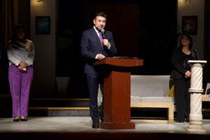 La jornada concluyó con un ambiente de convivencia y entretenimiento, donde las y los asistentes disfrutaron de la puesta en escena de la obra de teatro La Señora Presidenta, interpretada por un elenco de primer nivel, que brindó una velada llena de humor y celebración para el público presente.