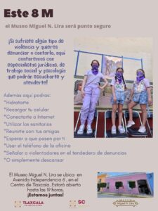Tlaxcala, Tlax., 7 de marzo de 2026.- En el marco del Día Internacional de la Mujer, el Museo Miguel N. Lira informó que este 8 de marzo (8M) funcionará como un espacio seguro para mujeres, con el propósito de brindar apoyo, acompañamiento y resguardo a quienes participen en las actividades y movilizaciones conmemorativas en la capital del estado.