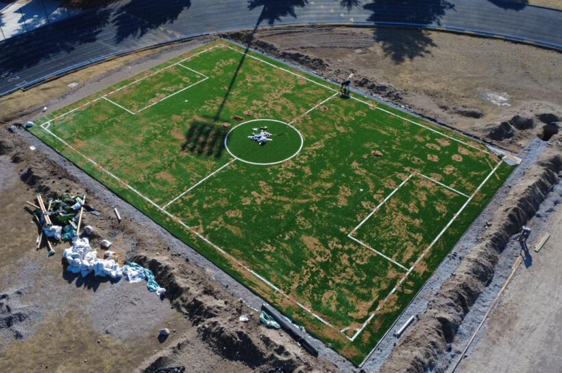REGISTRAN AVANCES LAS NUEVAS CANCHAS DE FÚTBOL 5 EN LA UNIDAD DEPORTIVA MIGUEL ARROYO ROSALES