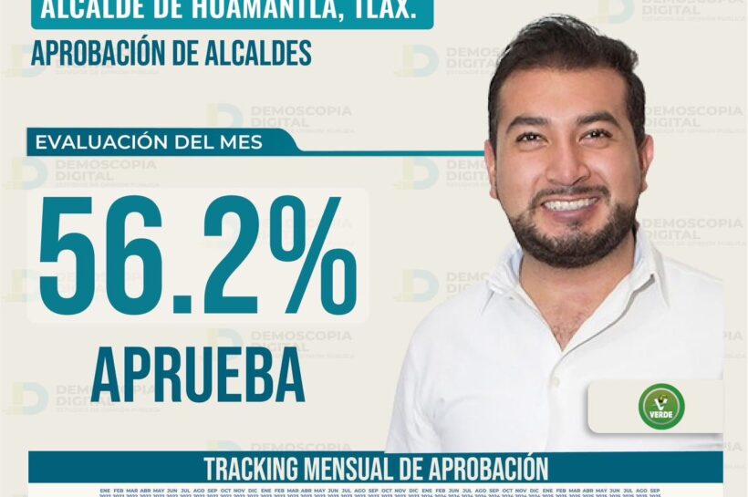 Redacción | La Noticia de Tlaxcala Huamantla, Tlax., 3 de octubre de 2025.- El presidente municipal de Huamantla, Salvador Santos Cedillo, obtuvo un 56.2 % de aceptación ciudadana en el más reciente estudio de opinión realizado por la encuestadora Demoscopia Digital correspondiente al mes de septiembre, colocándose en el segundo lugar del ranking de alcaldes…