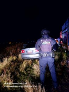 Huamantla, Tlax.; 5 de noviembre de 2025.- Elementos de la Dirección de Seguridad Pública, Tránsito y Protección Civil Municipal de Huamantla aseguraron un vehículo presuntamente relacionado con el robo con violencia a un establecimiento comercial en la zona centro, además de recuperar mercancía consistente en cajas de medicamentos.