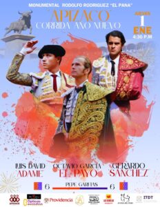 Octavio García “El Payo”, Luis David Adame y el joven diestro de Tlaxcala Gerardo Sánchez con 6 Toros de Pepe Garfias.