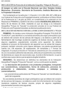 Tlaxcala, Tlax., 25 de febrero de 2026.- El Instituto Mexicano de la Propiedad Industrial (IMPI) publicó en el Diario Oficial de la Federación la Declaración de Protección de la Indicación Geográfica “Pulque de Tlaxcala”, otorgando a esta bebida de origen prehispánico el reconocimiento legal previsto en la Ley Federal de Protección a la Propiedad Industrial.