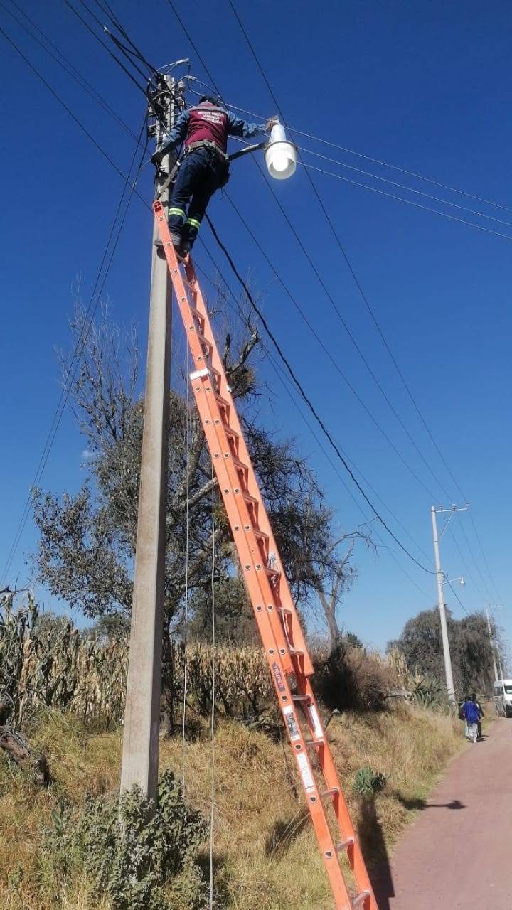 Rehabilitan red de alumbrado público en la Primera Sección de San Dionisio Yauhquemehcan