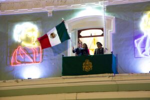 Previo al Grito, se realizó un protocolo solemne de honores a la Bandera en el Salón de Cabildo, con la participación de la Síndico Municipal Brizeyla Iveet Rodríguez López, el Secretario del Ayuntamiento Luis Miguel Quiroz Martínez, la Banda de Guerra “Héroes de México” y la escolta del Colegio Juana de Arco, en un acto de respeto y solemnidad.