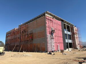 Durante la visita, las autoridades constataron un avance aproximado del 90 por ciento en el edificio principal, que contará con áreas de networking, comedor industrial y oficinas administrativas para el personal del parque industrial.