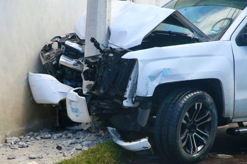 Madruguete en Acuitlapilco: chocan contra poste de luz y abandonan camioneta con placas de CDMX