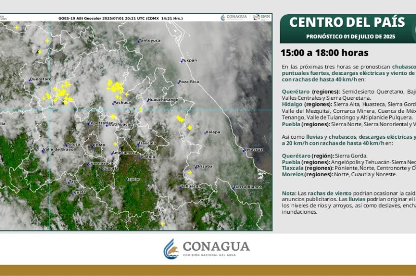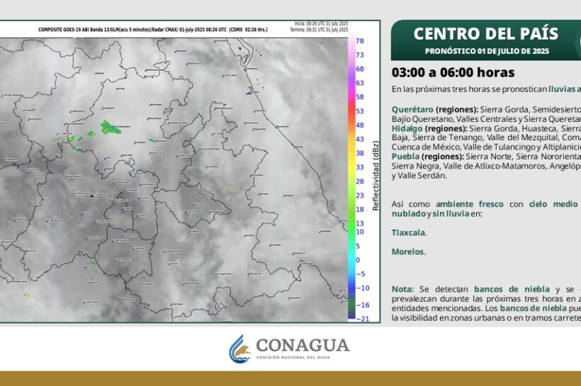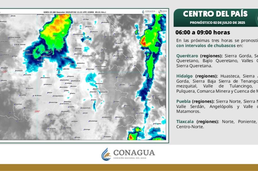 Redacción/La Noticia de Tlaxcala Tlaxcala, Tlax., 5 de julio de 2025.- La Comisión Nacional del Agua (Conagua) informó que, durante las primeras horas de este sábado, el estado de Tlaxcala presenta un ambiente fresco a templado, con cielo parcialmente nublado y sin probabilidad de lluvias. De acuerdo con el pronóstico regional para el centro del…