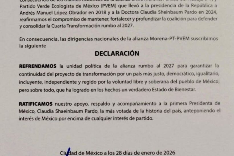 Partido Verde refrenda alianza con Morena, PT y confirma presencia en el proceso electoral 2027