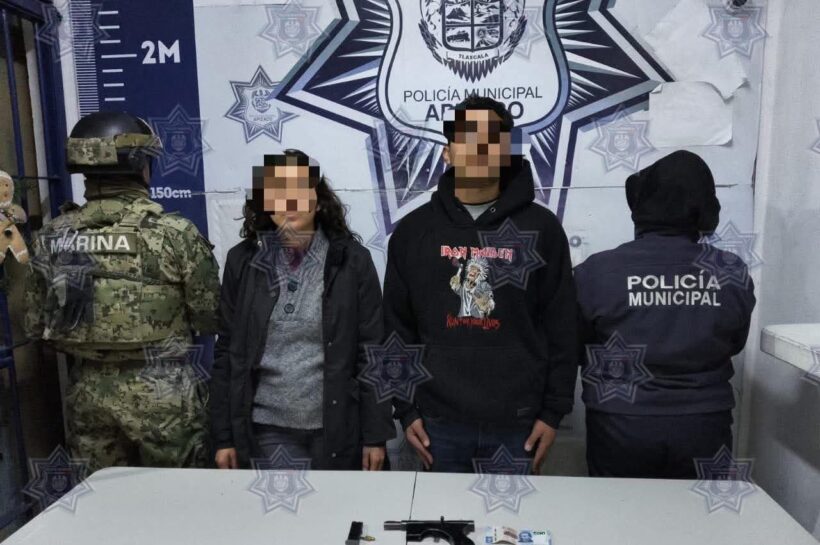 Policía de Apizaco y Marina detienen a dos presuntos responsables de robo con violencia